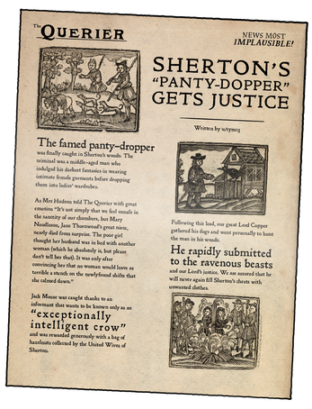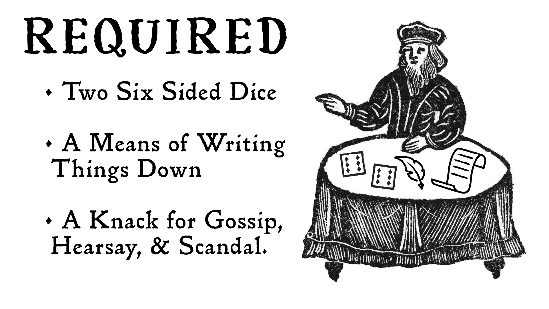 Take up the role of a small-town gossip writer in a time of devils, fairies, and witches.